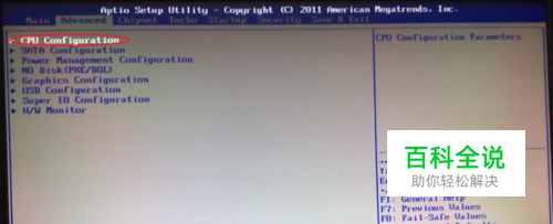 如果你的电脑没有打开虚拟化,需要重启电脑,开机之后按Delete键(笔记本按F2或者其他键,具体根据电脑型号,有的不是常规按键需要查看说明书或者打电话给客服),进入BIOS模式,找到【CPU Configuration】选项。