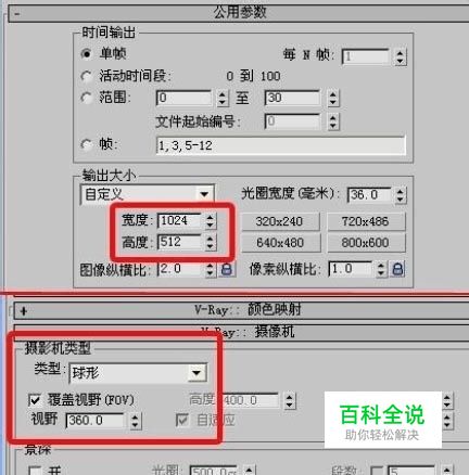 方法二,使用vary插件渲染全景图,方法也很简单,在场景架好摄像机后,在渲染设置里设置宽高比为2:1,然后把摄影机类型选择为球形,勾选覆盖视野为360度,然后就可以输出全景图了,用这种方式输出的全景图也只有一张成品,会受机器速度的影响一般输出6000分辨率以下的基本没问题,但稍大一些可能会出问题。