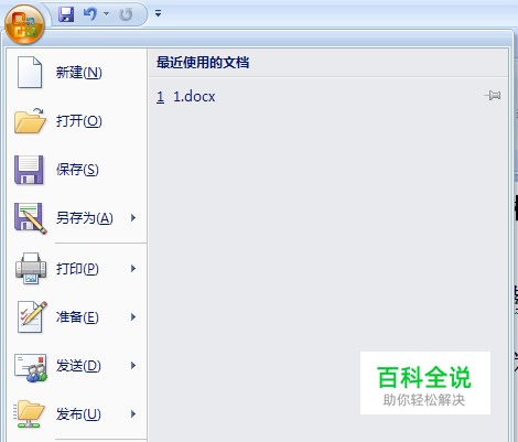 点击word左上角的office按钮,在下拉菜单中选择“Word选项”