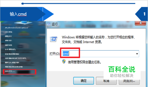 1.输入cmd 如图,点击开始-运行-输入cmd。