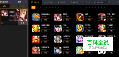 进入模拟器,分成两个部分:主界面及应用中心。在应用中心里搜索所要的游戏或应用。点击下载。小编在这里以诛仙手游为例。