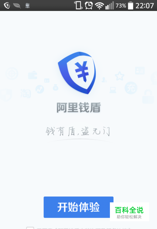 安装完阿里钱盾之后,在前面的宣传页面可以大体了解一下阿里钱盾是什么软件,有哪些主要功能。点击“开始体验”就进入了阿里钱盾主界面。