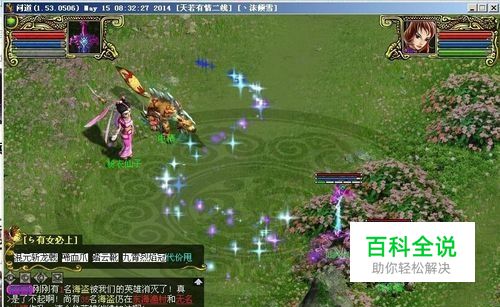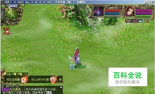 选好想要的宝宝之后,吃一个驱魔香直奔有该宝宝的地点而去。我选择的是百花谷一层,抓粉衣仙子。来到地图后找到离传送门口最近的十字路口,在这里转悠几圈后吃一个清心散,然后自动遇怪。