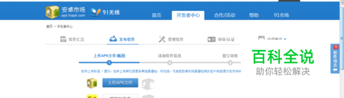 首先打开安卓市场官网,在右上角找到注册按钮,先注册成为开发者。