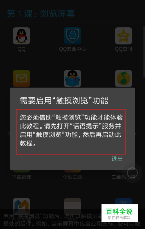 进入语音阅读屏幕的功能设置页面之后,点击设置页面中的“ 启动触摸浏览功能教程”选项。