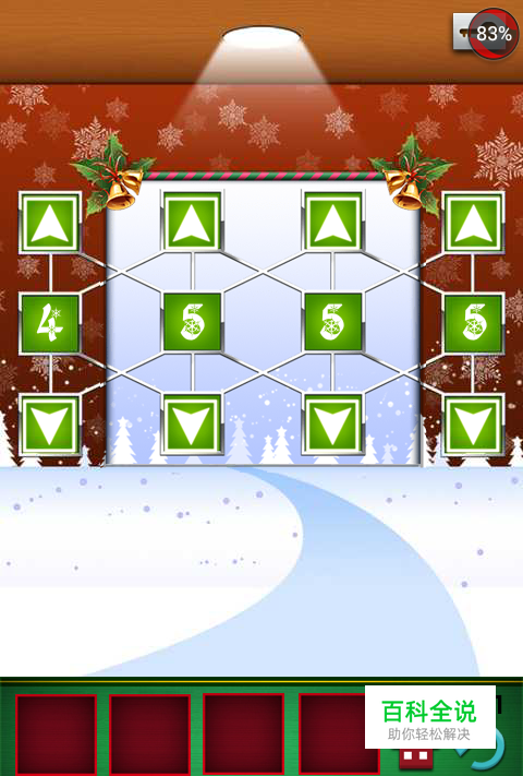 第一关,调整数字,使数字显示为1225即圣诞节的日期。推荐方法,一加到四,三加1,四加4,二减3