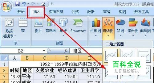 点击菜单栏上面的:插入--折线图,选择一种样式的折线图