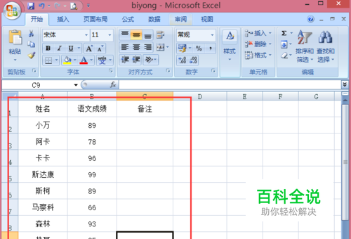 打开excel,输入内容,这里小编以某班同学的语文成绩为例。
