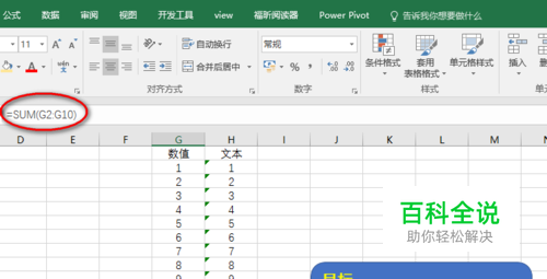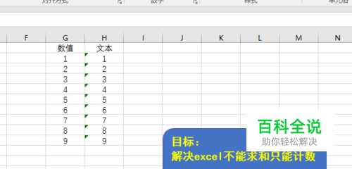 我这里是设定好的两个例子,一列是数字,一列是文本,看起来都是数值,我们用sum函数求和来看一下结果。合计栏中一个是45另外一个却是0