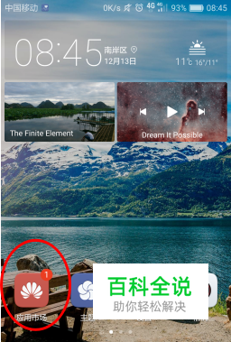 第一步:打开你的手机或回到手机主桌面。如下图所示,我们看到“应用市场”上有一个红色数字“1”。