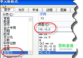 网上有很多类似的方法,有两个问题不能正常显示0,“+0;-0;0”可以让0正常显示。另外这个方法可以调整精确度,如“+00;-00;0”可以精确到0.01。