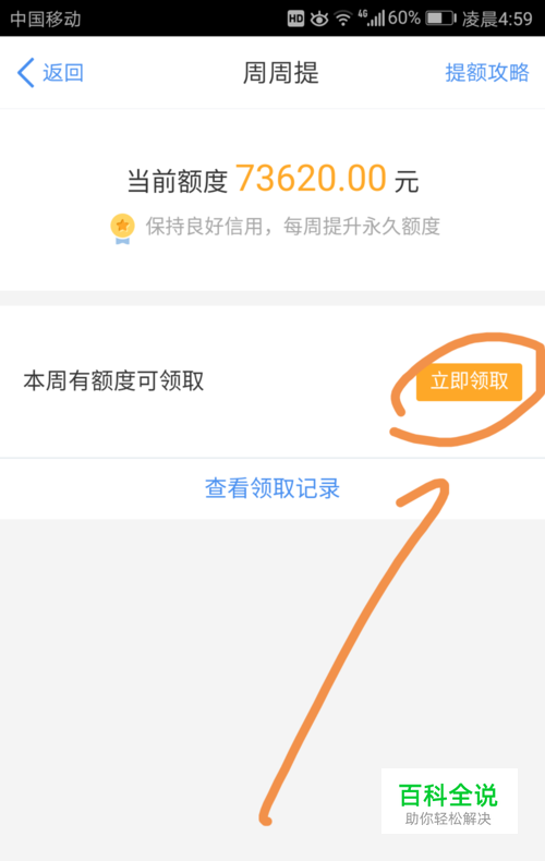 然后再本周有额度可领取后面点按立即领取。