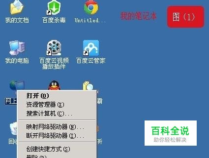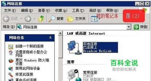 按图(1)在我的笔记本的桌面上找到“网上邻居”并在上面鼠标右键,然后选择“属性”出现如下界面图(2)