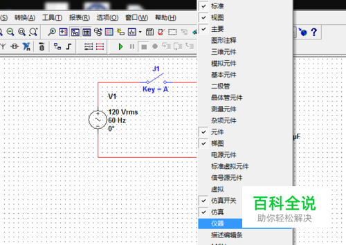 仪器栏第一个是万用表,依次往下第4个就是示波器,第5个是四踪示波器; 先看示波器用法,示波器有两个通道,可以同时观察两路信号,比如我们要看一个电阻两端电压变化,那么就把示波器的A通道和电阻两端并联,如图