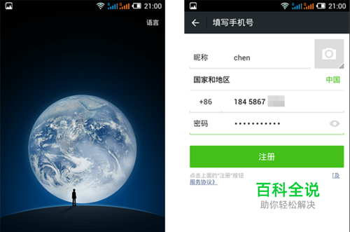使用亲心小号注册微信前,建议您最好先卸载原来的微信,然后重新安装微信; 我这里是用6.0版本的微信,打开后点击注册按钮,先填写个昵称、然后将刚刚领取到的“亲心小号”输入注册框,填写秘密,点击注册。 :