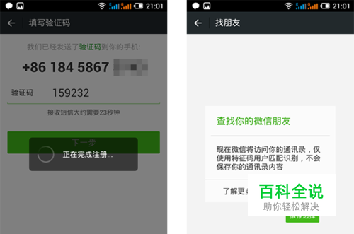 好了正在完成注册、、、有时候会自动完成短信验证,有时候需要手动输入接收到的短信验证码。注册成功、、、 在弹出的找朋友版面上不要去点 “ 好 ” 直接点击“ 了解更多 ” 。不然又被微信把你推荐给通讯录中的人就麻烦了。 :