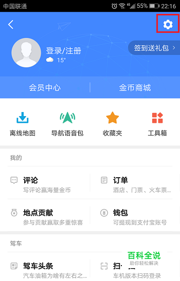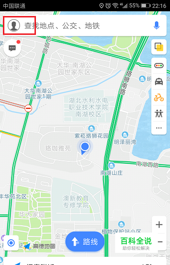 第一步打开软件,进去地图主界面,点击左上方的个人头像,如下图所示: