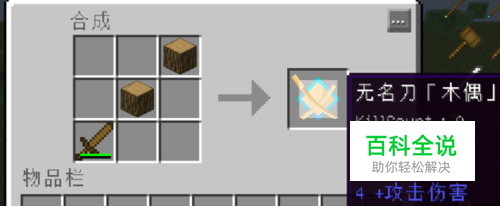首先木偶做法。 消耗过一点耐久的木剑在加2块原木即可合成, * * 原木 * 原木 * 木剑 * *