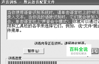 语音训练 麦克风设置完成以后,系统会进行语音识别的训练。首先要求您确认一些声音基本信息,接着点击“下一步”,系统给出一个例句,您可以点击“示例”按钮听一听应该如何朗读这样的句子。之后,再次点击“下一步”就可以开始语音训练了。 语音训练的方式如图2所示。您只要用平常的语调朗读对话框的内容即可。系统会对您的语音进行识别,能够识别的语句即呈现选中状态,否则会停留在不能识别的字词那里等待您进行重复。所有的语句都识别结束之后,系统会自动生成语音配置文件。
