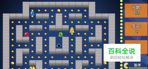 游戏的目的很简单,就是我们的吃豆人大嘴巴走遍图中的每一个地方,把每一关图中的小黄点豆豆都吃完就行了。