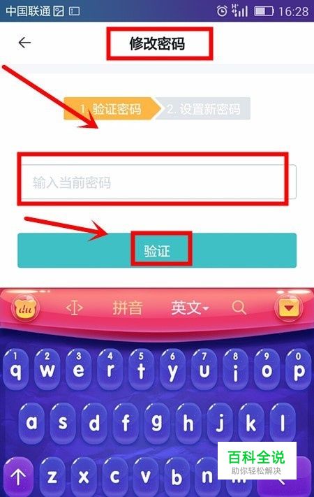 这时,手机页面出现修改密码页面,我们按照提示输入当前账号的密码;