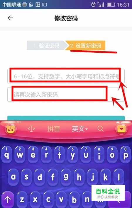 接着,我们会进入修改密码的第二道工序,即设置新密码,我们按照提示两次输入我们想要设置的新密码;