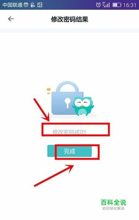 最后,我们会看到修改密码结果页面提示修改成功,我们点击页面中的完成就好。