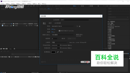打开AE,点击“新建合成”在弹出的窗口中选择参数,点击“确定”