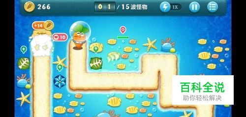 然后再在怪物出口处的第一个转弯的位置放一个减慢速度的“雪花”,然后将萝卜第二个转弯处的“鱼骨”升级。