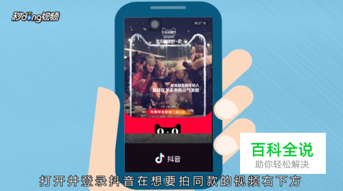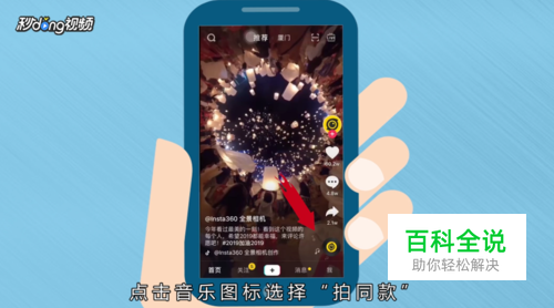 打开并登录抖音,想要拍同款的视频右下方点击“音乐”图标。