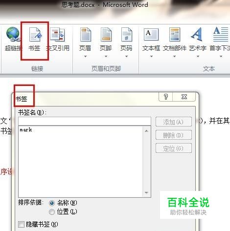 word2010如何设置书签并插入书签标记文本