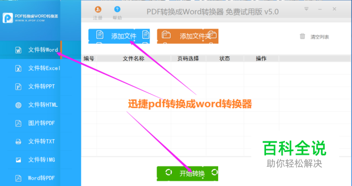 软件使用方法如下(以PDF转Word为例):