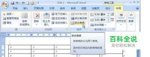 单击Word 2007“拆分表格”按钮.完成.