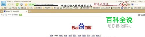 打开你的浏览器,输入网页地址:http://www.baidu.com 回车或者点击【转到】按钮