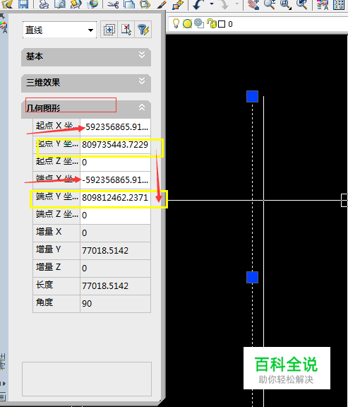 然而,也许你画了老半天的图,老半天的功夫,不能因此就报废了,你还要还原草图,但是又需要尺寸准备,那该如何办到呢,这里也很简单。在你所画的图片里,总有一条直线你是记得其原始尺寸的,当然我们画图的时候,一般都有纸质草图,你选一条有已知长度的直线,双击,调出特性,可以从坐标值计算出长度(如果竖线,起点和端点X坐标值是相同的,那么就可以从Y坐标值记算出其长度),那么再用实际的长度,除以这个长度,得出一个比值。