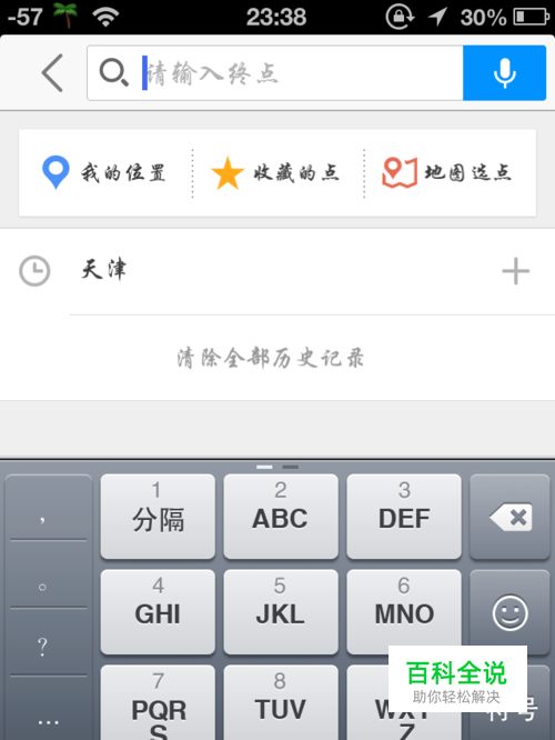 进入路线搜索界面,起点是我的位置,输入终点的地址,如图所示。