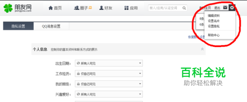 先看到的就是隐私的设置,如果刚开始就知道隐私的设置的话,那我可能不会有这么多麻烦。所以,我把所有的信息全改了个人所见,意思就是对其他的人不公开。