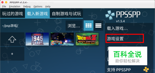 打开ppsspp模拟在右边找到“ 游戏设置”选项。