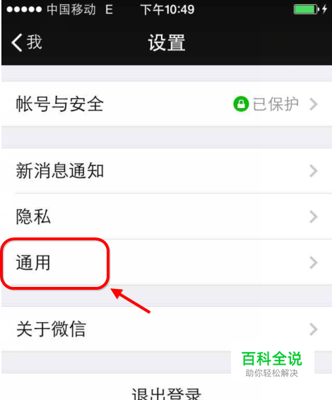 进入微信个人设置菜单功能选项,找到【通用】功能如图