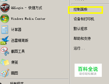 点击开始菜单中控制面板