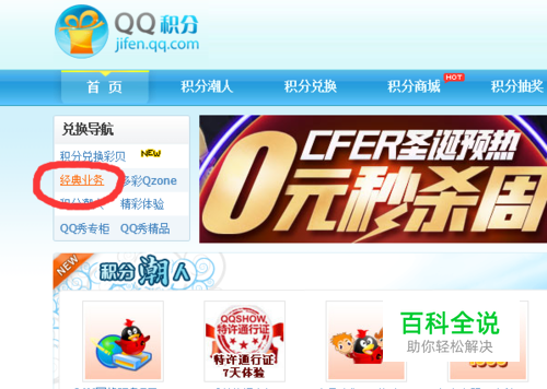 打开QQ积分官网http://jifen.qq.com/ ,点击左侧的经典业务。