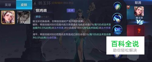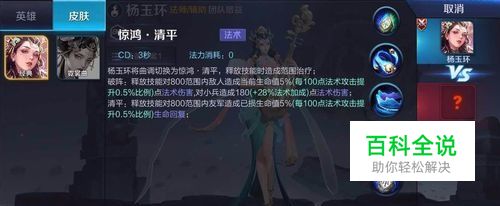 被动:惊鸿调解析:杨玉环的被动可主动切换,其分为两种效果:清平(恢复)、破阵(输出)。她的被动效果由其他技能触发,但不会影响其他技能的基础数值。假设以清平状态对敌方使用一技能,那么杨玉环可以对敌人造成一技能的数值伤害,同时治疗自己与身边队友,而如果以破阵形态输出,那么则没有治疗效果而是对目标造成一定量的百分比伤害。