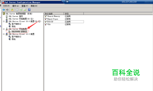 点击 开始----所有程序----SQL server配置管理器,如下图操作