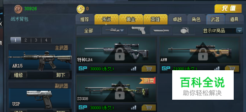 商城购买武器: 要练习使用瞄准镜,是需要特殊的武器的,远距离狙击类型的武器才会有瞄准镜哦,不然是么有的。所以我们需要商城里先进行购买。