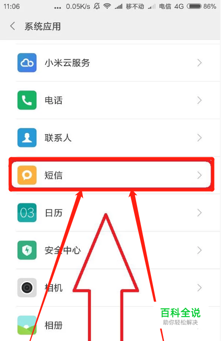 进入系统应用后我们再找到我们的“短信”一栏,点击并进入短信的设置页面中。