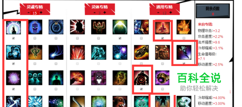 adc专精的选择0.15.15,具体的专精属性如图。作为一个adc的攻击力和攻击速度和移速都是很需要的属性。