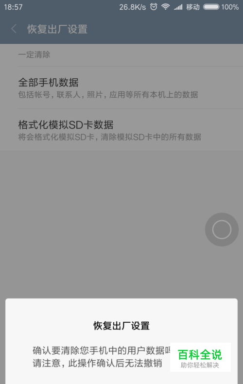 接下来,在打开的恢复出厂设置页面中,我们可以看到页面中底端的“ 恢复出厂设置”按钮,点击之后即可进入手机的恢复模式。