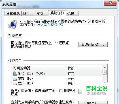 右键点击桌面上的“计算机”图标,选择“属性”。单击“系统保护”。点击“系统还原”按钮。打开系统还原向导。
