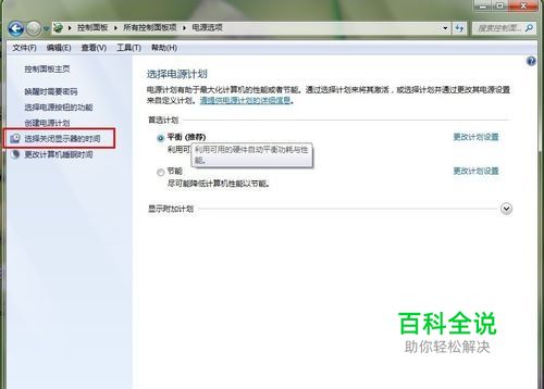 进去电源选项的画面。选择》选择关闭显示器时间。