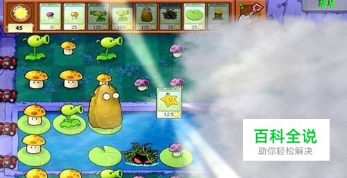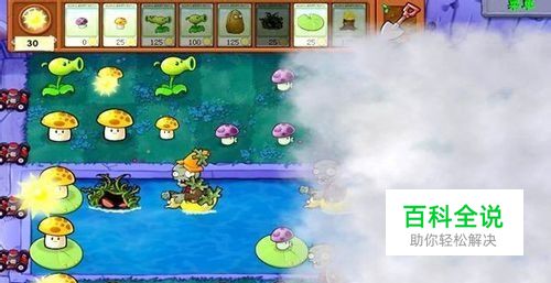 我们开始种植阳光菇和小喷枪,并在河里种上荷叶和缠绕水草,在种上小喷枪后,敌人会死在小喷枪的子弹之下。